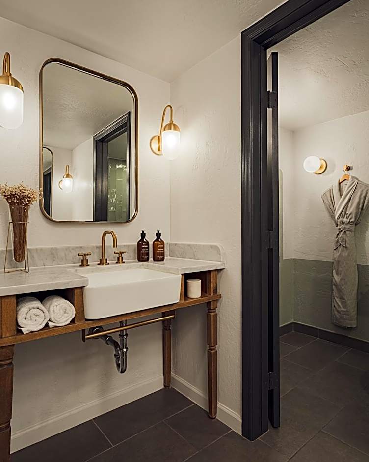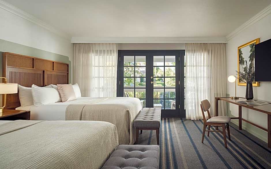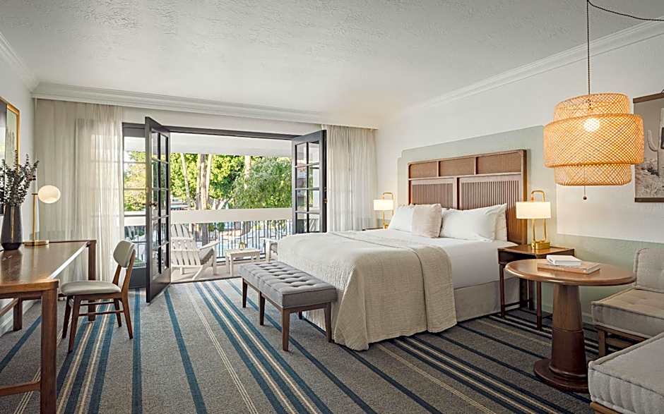 Featuring views of the courtyard from a private patio or balcony, this room provides designer bath toiletries. A flat-screen TV, an oversize desk and organic mini-bar.